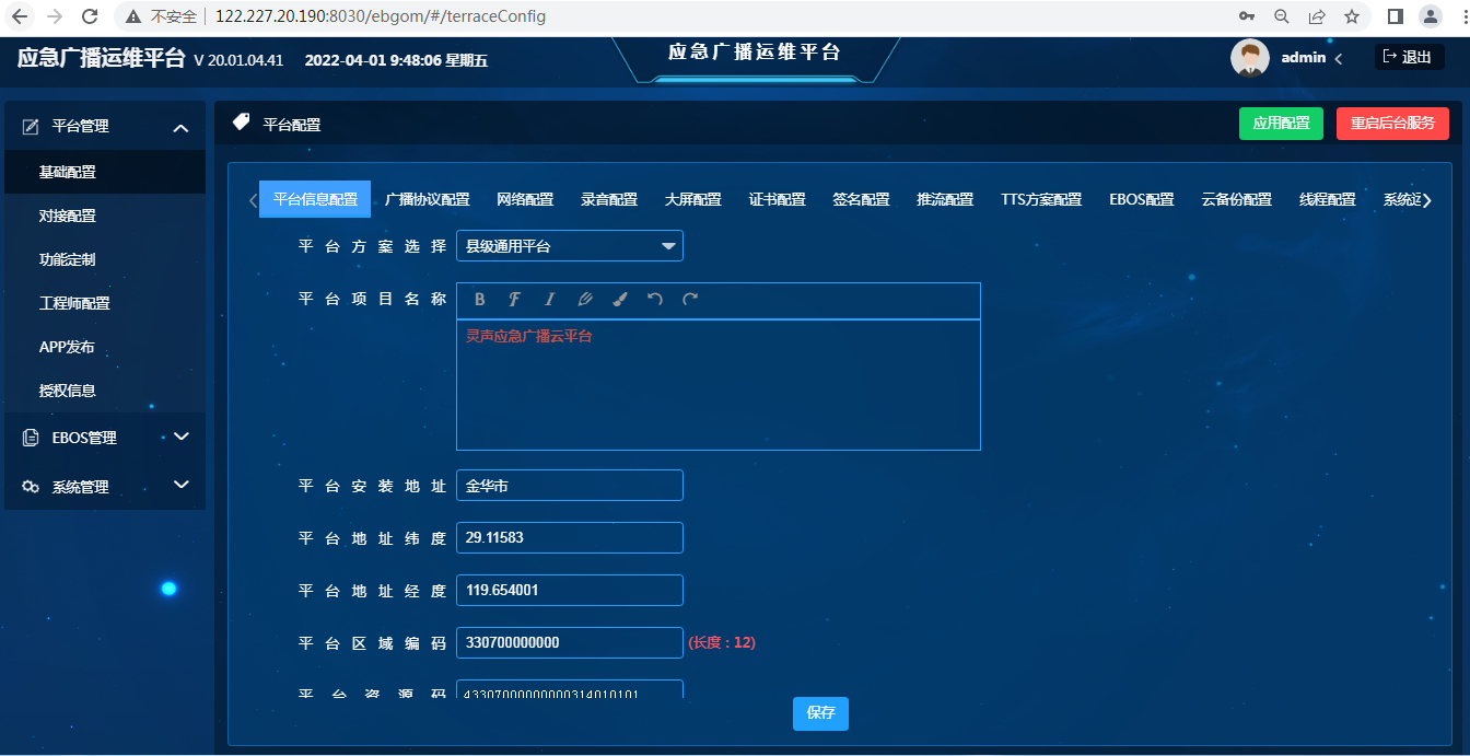 进入平台后对服务器配置、设备相关参数设置,查看各设备工作状态,也可对设备下发指令,校正数据,便于设备维护,保障设备稳定运行。